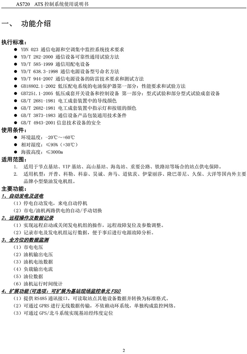 基站發(fā)電控制箱AS720
